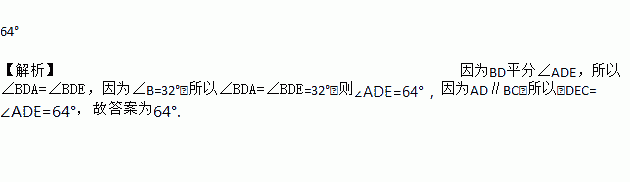 如图,已知AD∥BC,∠B=32°,BD平分∠ADE,则∠DEC=_____.
