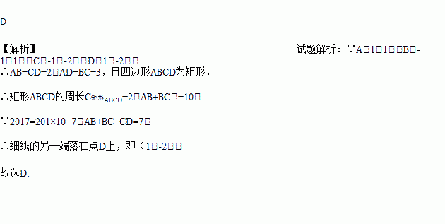 如图,在平面直角坐标系中,已知点A(1,1),B(﹣1,1),C(﹣1,﹣2),D(1,﹣2),把一根长为2017个单位长度且没有弹性的细线(线的粗细忽略不计)的一端固定在A处,并按A→B→C→D→A…的规律紧绕在四边形ABCD的边上,则细线的另一端所在位置的点的坐标是( )