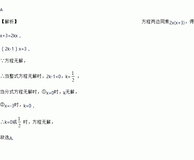 若关于x的方程无解,则k的值为( )