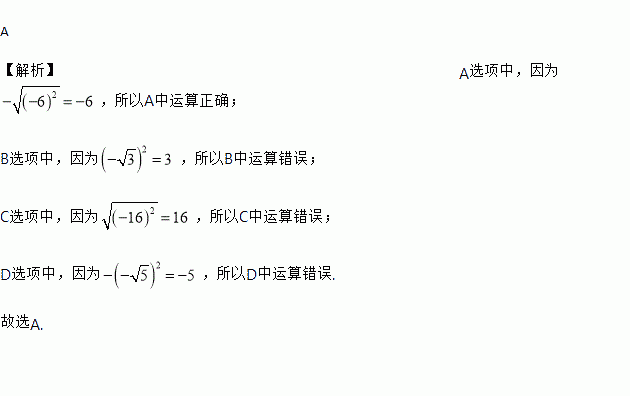 A. -=-6 B. (-)2=9 C. =±16 D. -(-)2=-25