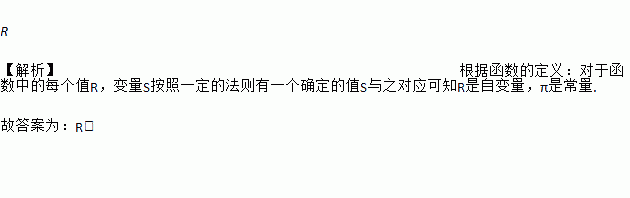 圆的面积S与半径R之间的关系式是S=πR2,其中自变量是______.
