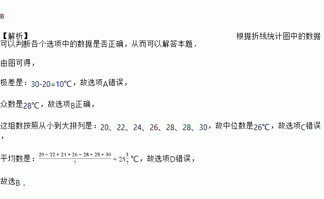如图是成都市某周内日最高气温的折线统计图,关于这7天的日最高气温的说法正确的是( )
