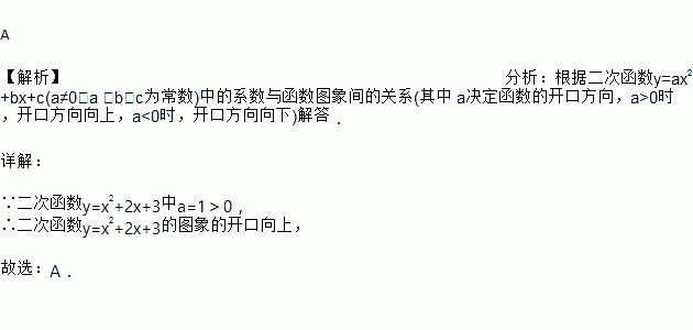 二次函数y=x2+2x+3的图象的开口方向为( )