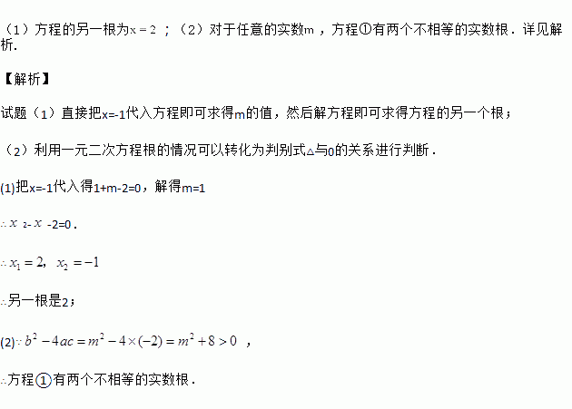 对于任意实数,判断方程①的根的情况,并说明理由.