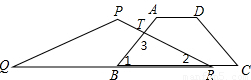 如图,在梯形ABCD中,AD∥BC,AB=AD=DC=2cm,BC=4cm,在等腰△PQR中,∠QPR=120°,底边QR=6cm,点B、C、Q、R在同一直线l上,且C、Q两点重合,如果等腰△PQR以1cm/秒的速度沿直线l箭头所示方向匀速运动,t秒时梯形ABCD与等腰△PQR重合部分的面积记为S平方厘米.(1)当t=4时,求S的值;