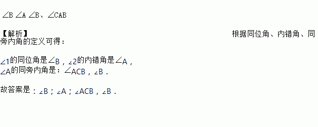 在图中,与∠1是同位角的是______,与∠2是内错角的是______,与∠A是同旁内角的是_________.