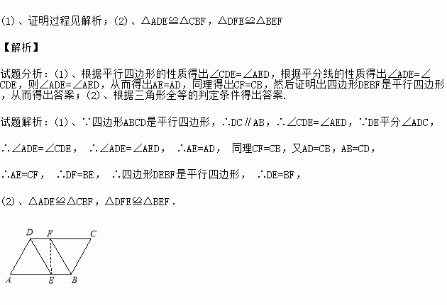 如图,四边形ABCD是平行四边形,DE平分∠ADC交AB于点E,BF平分∠ABC,交CD于点F.