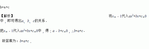 若一元二次方程ax2+bx+c=0(a≠0)有一个根为-1,则a、b、c的关系是______.