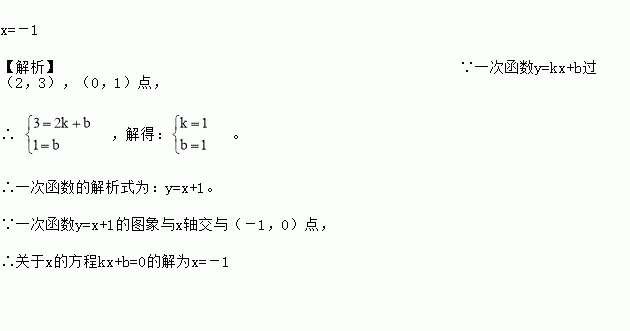 一次函数y=kx+b(k,b为常数,且k≠0)的图象如图所示,根据图象信息可求得关于x的方程kx+b=0的解为