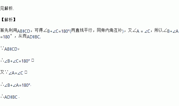 如图,已知AB∥CD, ∠A=∠C. 求证:AD∥BC