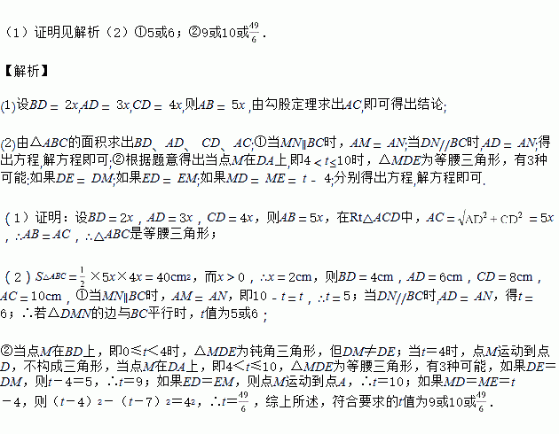 ②若点E是边AC的中点,问在点M运动的过程中,△MDE能否成为等腰三角形?若能,求出t的值;若不能,请说明理由.