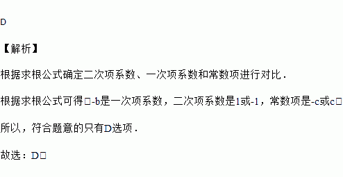 A. x2+bx+c=0 B. x2+bx﹣c=0 C. x2﹣bx+c=0 D. x2﹣bx﹣c=0