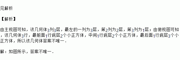 用小立方块搭一个几何体,使从正面和上面看到的图形如图所示,并画出.