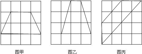 如图,在4×4的正方形网格中的每个小正方形边长都是1,每个小格的顶点叫做格点,以格点为顶点分别在图甲、图乙、图丙中,各画出一个面积为6的互不全等的等腰梯形.