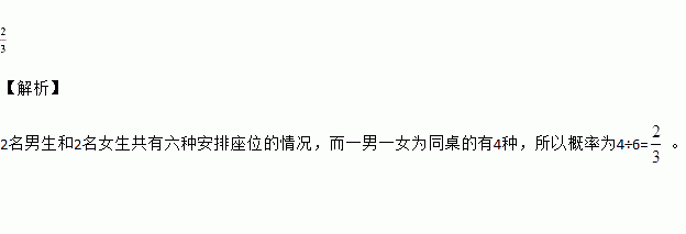 有名男生和名女生,王老师要随机地两两一对地为他们排座位,一男一女排在一起的概率是________.