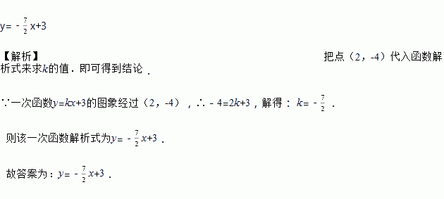 若一次函数y=kx+3的图象经过(2,-4),那么这个函数的解析式是__________.