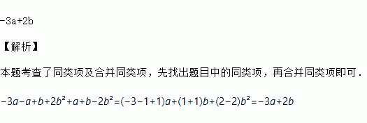 化简:﹣3a﹣a+b+2b2+a+b﹣2b2=________.