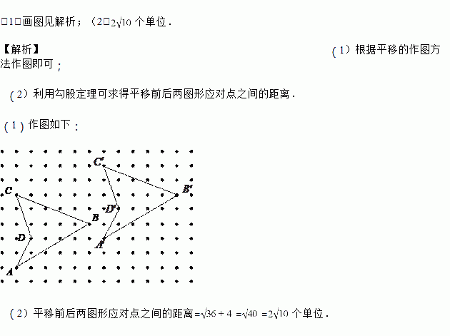 (1)在格点中画出图形先向右平移6个单位,再向上平移2个单位后的图形;