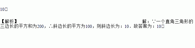 某直角三角形三条边的平方和为200,则这个直角三角形的斜边长为 .