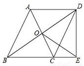 如图,□ABCD的对角线交于点O,点E在边BC的延长线上,且OE=OB,连接DE.