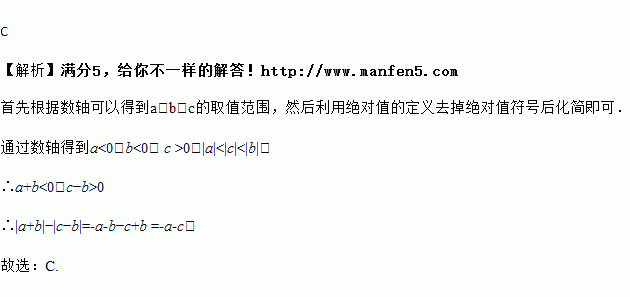 A. a+c B. c-a C. -c-a D. a+2b-c