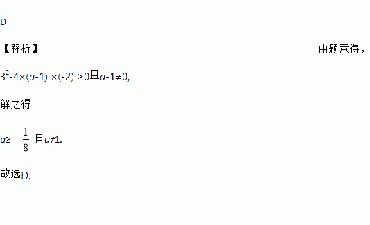 若关于x的一元二次方程(a-1)x2+3x-2=0有实数根,则a的取值范围是( )