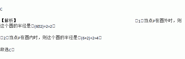 若⊙O所在的平面内上有一点P,它到⊙O上的点的最大距离是6,最小距离是2,则这个圆的半径为( )