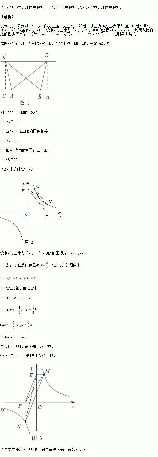 (1)探究新知:如图1,已知△ABC与△ABD的面积相等,试判断AB与CD的位置关系,并说明理由.