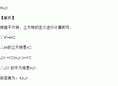 64的立方根是____,的平方根是_______.