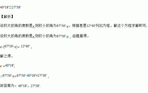 已知两个角的和是67°56′,差是12°40′,则这两个角的度数分别是_____.