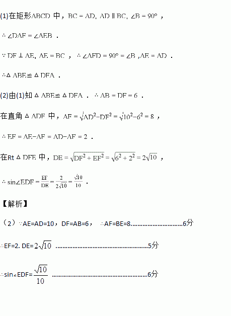 (2)如果AD=10,AB=6,求sin∠EDF的值。