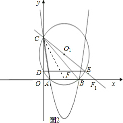 (3)如图2,设⊙O1的弦DE∥x轴,在x轴上是否存在点F,使△OCF与△CDE相似?若存在,求出所有符合条件的点F的坐标;若不存在,请说明理由.