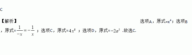 A. x6÷x2=x3 B. (﹣x)﹣1= C. (2x3)2=4x6 D. ﹣2a2•a3=﹣2a6