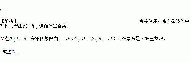 若点P(3,b)在第四象限内,则点Q(b,﹣3)所在象限是( )