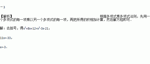 若(x+6)(x+2)=x(x-3)-21,则x=_______.