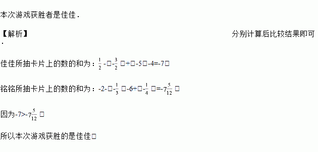 佳佳和铭铭做游戏,游戏规则如下:①每人每次抽4张卡片,如果抽到形如