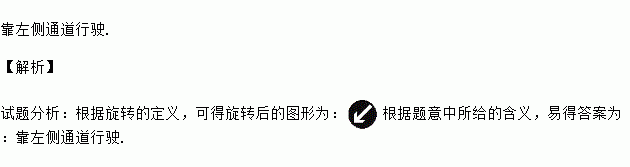 右图是“靠右侧通道行驶”的交通标志,若将图案绕其中心顺时针旋转90°,则得到的图案是“ ”的交通标志(不画图案,只填含义).
