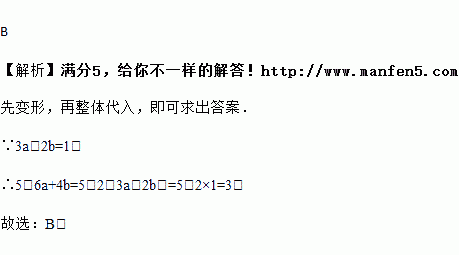 已知3a﹣2b=1,则代数式5﹣6a+4b的值是( )