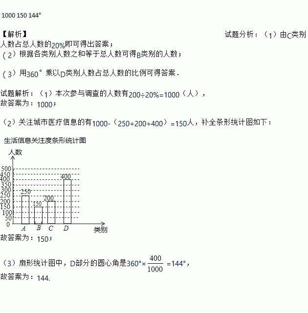 (2)关注城市医疗信息的有______ 人,并补全条形统计图;
