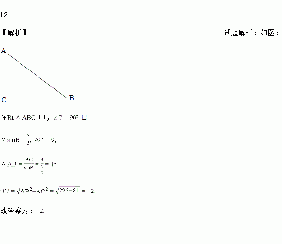 在Rt△ABC中,∠C=90°,AC=9,sinB=,则BC=____.