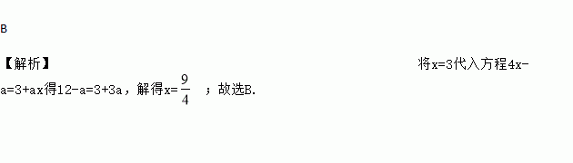 已知x=3是关于x的方程:4x-a=3+ax的解,那么a的值是( )