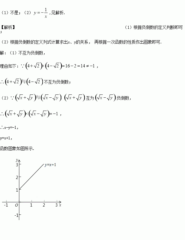 的负倒数,求点(x,y)中纵坐标随横坐标变化的函数解析式,并画出函数图象.