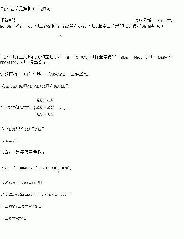 (2)当∠A=40°时,求∠DEF的度数.