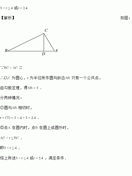 中,,,,以为圆心,为半径的圆与线段只有一个公共点,则的取值范围为________.