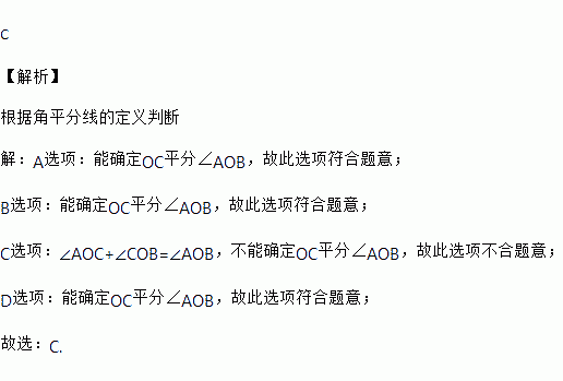 如图,OC为∠AOB内一条直线,下列条件中不能确定OC平分∠AOB的是( )