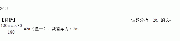 如图,扇形纸扇完全打开后,外侧两竹条AB,AC的夹角为120°,AB长为30cm,则弧BC的长为________cm(结果保留 )