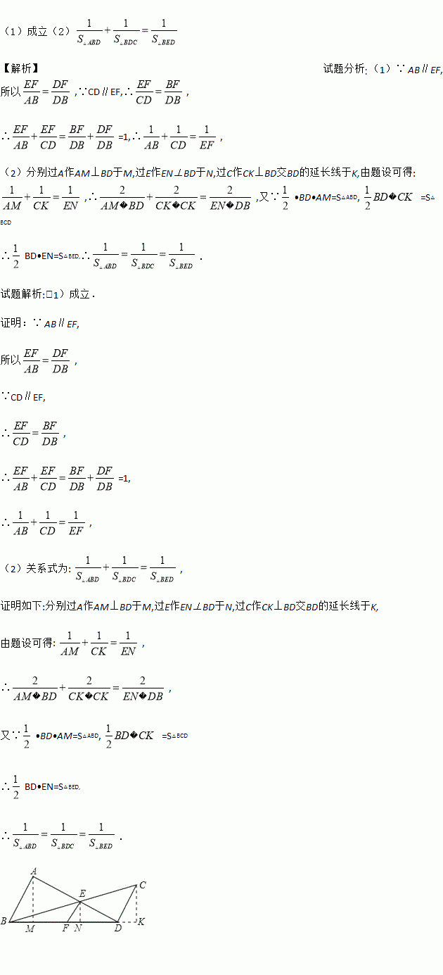 若将图中的垂线改为斜交,如图,AB∥CD,AD,BC相交于点E,过点E作EF∥AB交BD于点F,则: