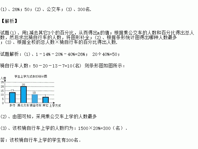 (3)如果该校共有1500名学生,请你估计该校骑自行车上学的学生有多少名?