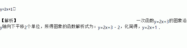 y=2x+1. 【解析】一次函数y=2x+3的图象沿y轴向下平移2个单位,所得图象的函数解析式为:y=2x+3﹣2,化简得,y=2x+1.