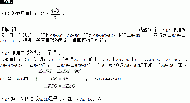 如图,在平行四边形ABCD中,E、F分别是AB、BC的中点,CE⊥AB,垂足为E,AF⊥BC,垂足为F,AF与CE相交于点G.
